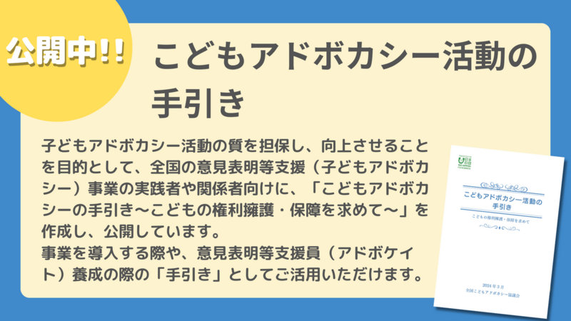 | 名称 | NPO法人全国子どもアドボカシー協議会 |